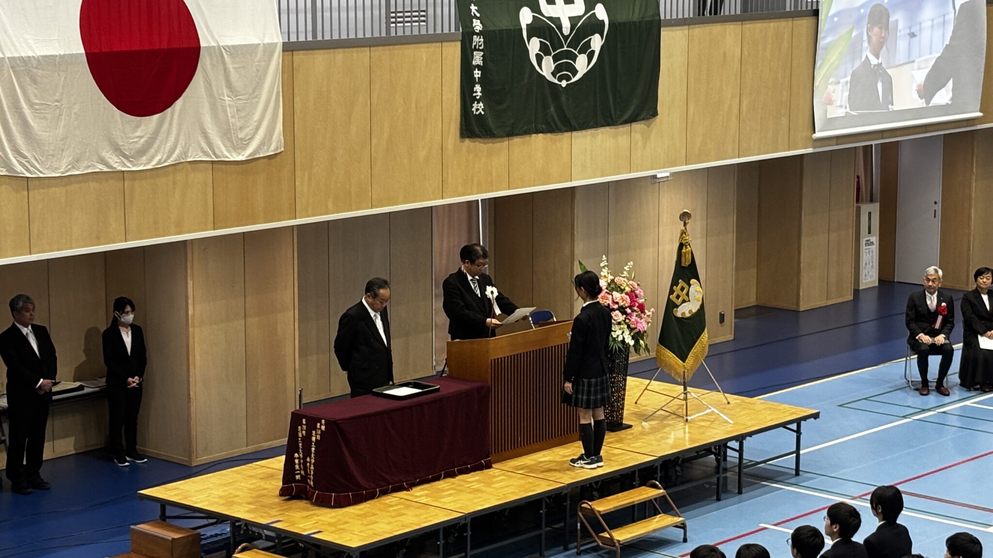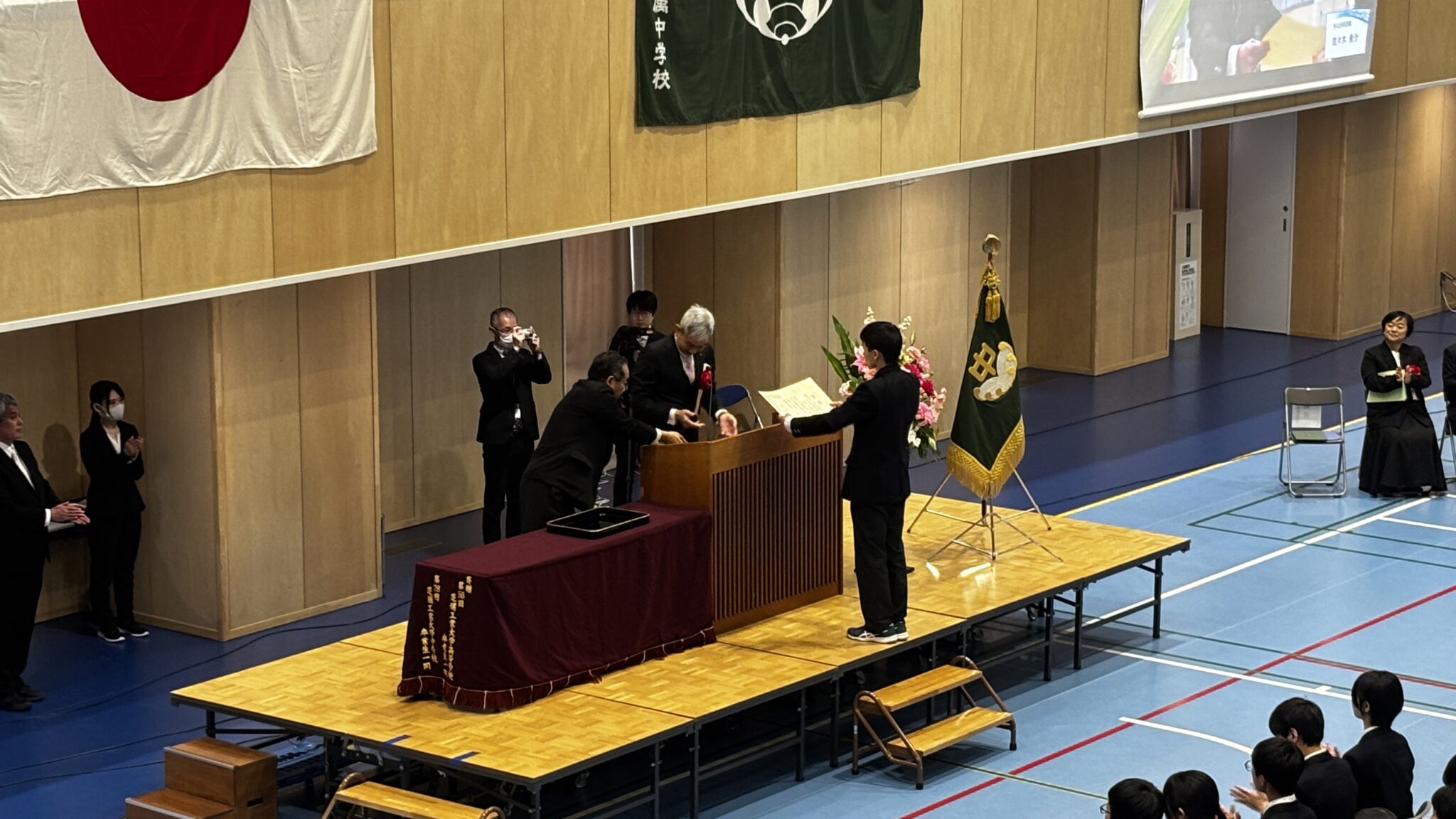 少し緊張した表情の中にも、どこか晴れやかな顔つきで式に臨む卒業生たちの姿がとても印象的でした。3年間を過ごした仲間や先生方に見守られながら、一人ひとりが卒業証書を受け取る時間は、あたたかく、心に残るひとときとなりました。